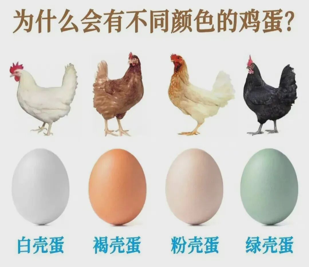 如果没有色素的参与,鸡蛋原本都是白色的,产白色鸡蛋的蛋鸡有来航鸡、乌骨鸡等;有些母鸡产道中会分泌一种特殊的粘液,不仅具有润滑抑菌的效果也含有粉色色素,这便使白色鸡蛋浸染上了粉红色泽。 有些鸡能产出青蓝色的鸡蛋,这源于鸡胆汁中的胆绿素,;还有些鸡会产褐色的鸡蛋,这来自于一种叫“原卟啉”的色素;如果兼备两种色素,则会产出橄榄色或灰绿色的蛋,色素不同程度叠加产生了更多渐变的色彩。 鸡蛋的颜色多种多样,在蛋壳厚度和个别营养物质上也有所差异。 有经验的养鸡人都知道:影响鸡蛋蛋壳质量的环境因素有:光照、温度以及空气质量。 我们都知道蛋壳的主要成分是钙、磷。母鸡在孵蛋时,机体内对钙、磷的吸收是协同的,饲料中铁、镁、锌、锰等的含量都会影响钙磷的吸收,进而影响蛋壳质量,就很有可能导致蛋壳变薄。 所以